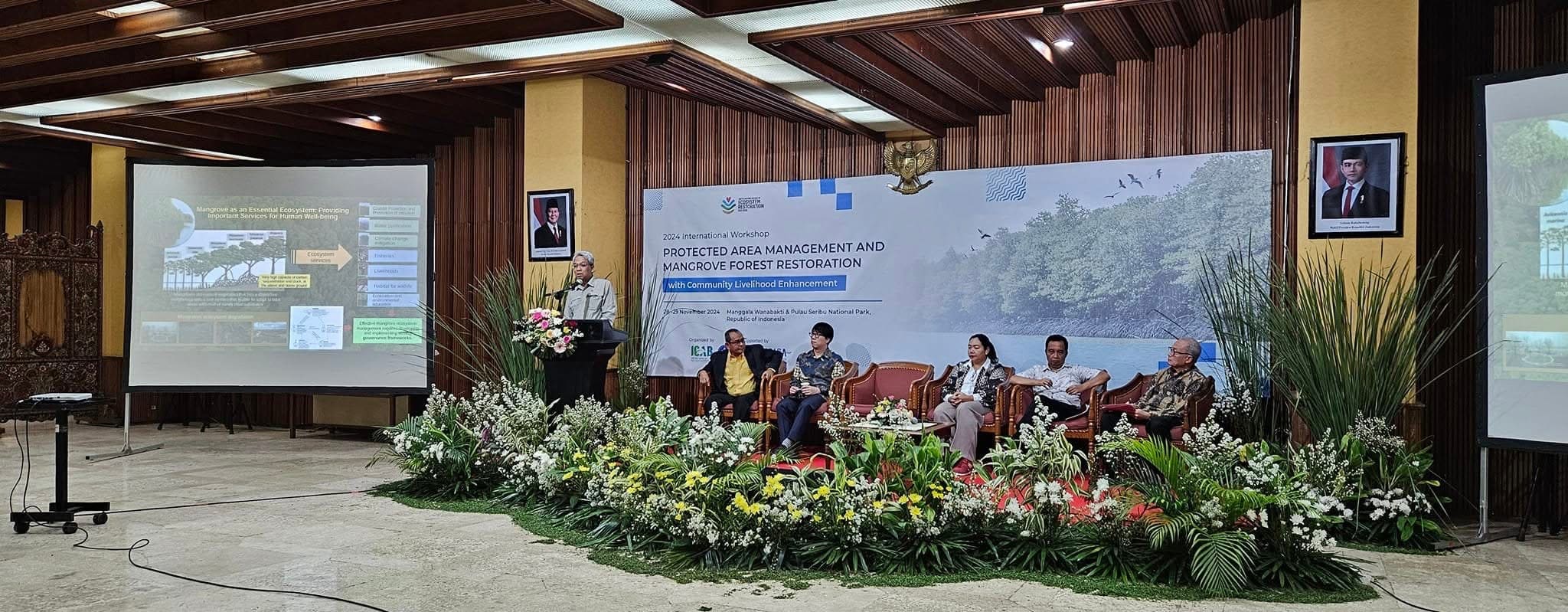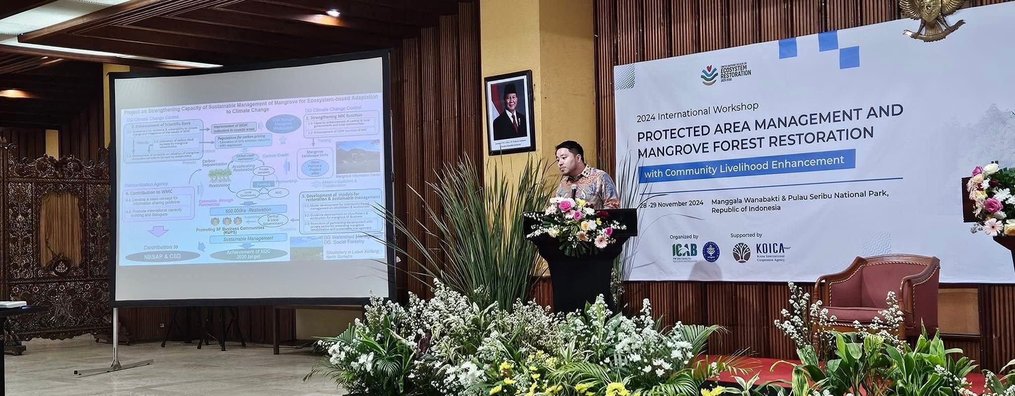 The 4th On-Site Training, titled “International Workshop on Protected Area Management and Mangrove Restoration with Community Livelihood Enhancement,” was held on November 28–29, 2024, at the Manggala Wanabakti Building, Ministry of Environment and Forestry, Indonesia, with 96 participants in attendance. The meeting brought together experts, policymakers, private sectors, and NGOs including KOICA, JICA and USAID to discuss mangrove restoration, biodiversity conservation, sustainable management of protected areas.